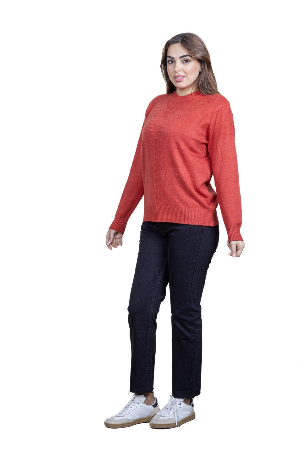 - High neckline complete with ribbed hemline